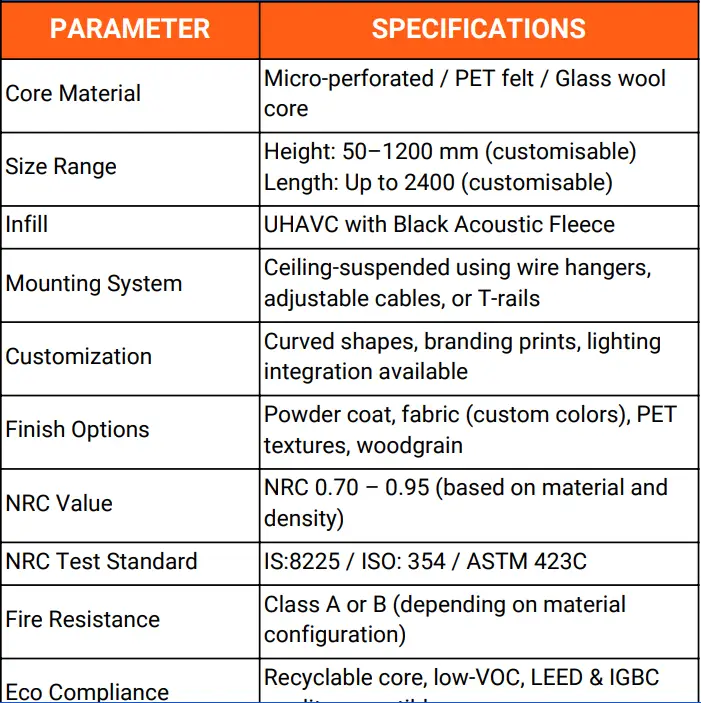 It’s excellent performance enhance the space not only aesthetically by also acoustically Crafted with options like micro-perforated metal, PET felt, or semi rigid acoustic cores, PerfoAudile™ Baffles provide flexible acoustic treatment for large-volume spaces such as offices, airports, metro stations, educational institutes, and commercial lobbies.