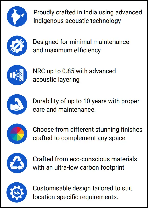 Ideal for a wide range of spaces—from corporate boardrooms, conference halls, and premium auditoriums to studios, home theatres, and luxury lounges—FeatherLite tiles not only enhance sound clarity but also elevate the visual appeal of any interior. Their modern design, combined with exceptional acoustic efficiency, makes them a long-term solution for architects, designers, and property owners who seek both functionality and elegance.