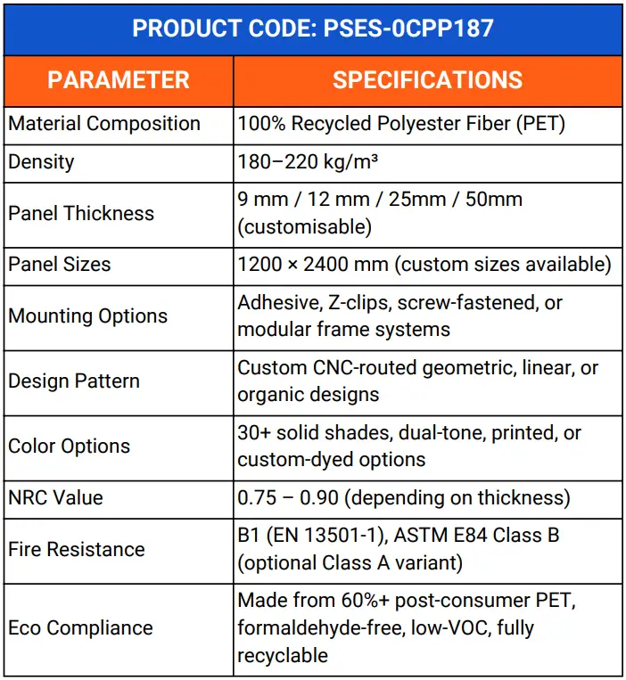CNC PET Panel Shade Codes help you choose the perfect color and finish to match your design vision. With a wide range of shades available, these panels let you balance aesthetics and acoustic performance, ensuring your space looks as good as it sounds.