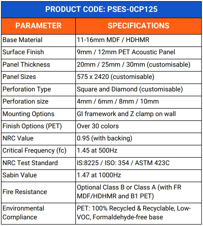 Reference product code PSES-OCP125 for accurate identification and ordering of PackSound EchoStop™ Composite Panels, ensuring the perfect acoustic solution for your space.
