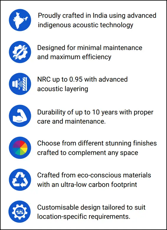 Crafted for elegance and performance, EchoStop™ panels offer a seamless blend of customisable finishes, superior NRC ratings, and clean architectural lines making them a perfect choice for auditoriums, boardrooms, studios, theatres, and luxury interiors.