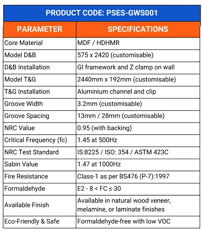 Discover the PackSound EchoStop™ Grooved Wooden Slats, high-performance acoustic wall and ceiling panels designed to reduce reverberation, control ambient noise, and enhance speech clarity. Crafted in India using advanced indigenous acoustic technology, these panels feature precision-cut grooves and micro-perforations for optimal sound absorption, achieving an NRC rating up to 0.95 when combined with acoustic backing materials like mineral wool or polyester felt.