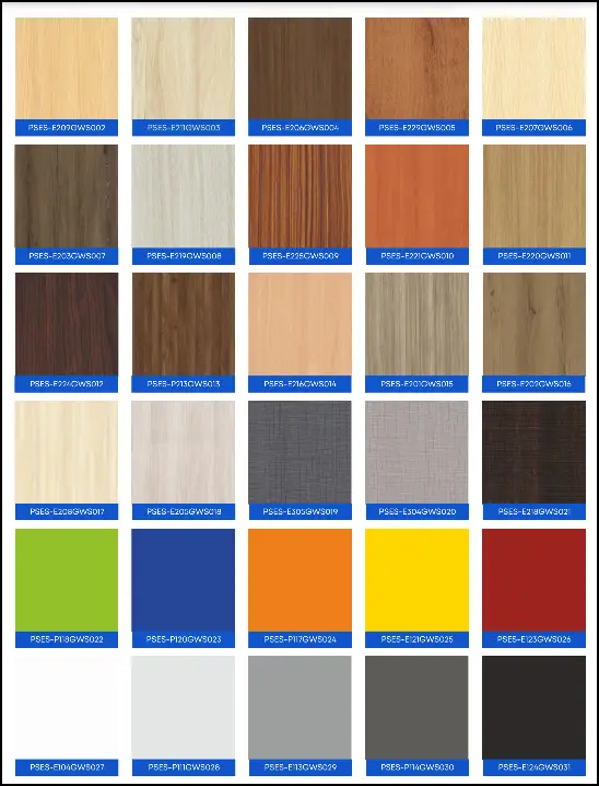 Choose from a versatile selection of EchoStop™ Grooved Wooden Slat panel finishes, available in a variety of wood grains, solid colors, and textured patterns. Whether you’re aiming for a natural wood aesthetic or a bold, modern look, these high-quality finishes allow you to tailor acoustic panels to match your interior design perfectly. Each finish is labeled with a unique product code for easy reference and selection.