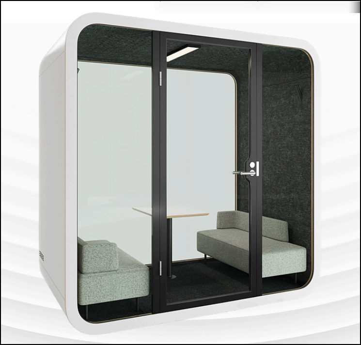 Built to deliver up to 30 dB (±5) noise reduction at 100 dB ambient sound levels, it ensures clear communication and deep concentration in any setting. Its exterior features a robust mica-laminated body, while the interior is lined with 9mm PET acoustic panels for optimal sound absorption. A 10mm thick tempered glass door with a matte black frame offers visibility without compromising acoustic integrity.